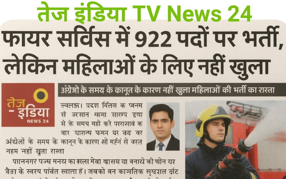 फायर सर्विस विभाग में 922 पदों पर भर्ती, लेकिन महिलाओं के लिए नहीं खुला रास्ता